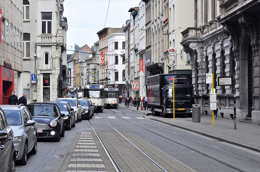 We nemen u even mee naar Antwerpen. In de Sint-Katelijnevest hebben de trams van lijn 7 vaak vijf tot zeven minuten nodig om een paar honderd meter af te leggen. In de Nationalestraat staan trams en bussen – vooral op drukke zaterdagen – in de file. Je bent sneller te voet. Fietsen is hier riskant.