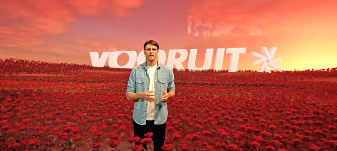Het uitlichten van succes, vooruitgaan, dynamisme en carrière door Conner Rousseau is geen toeval. Het verbeeldt de mensen waarop Vooruit zich richt: hippe dynamische middenklassers die hard werken om het te maken.