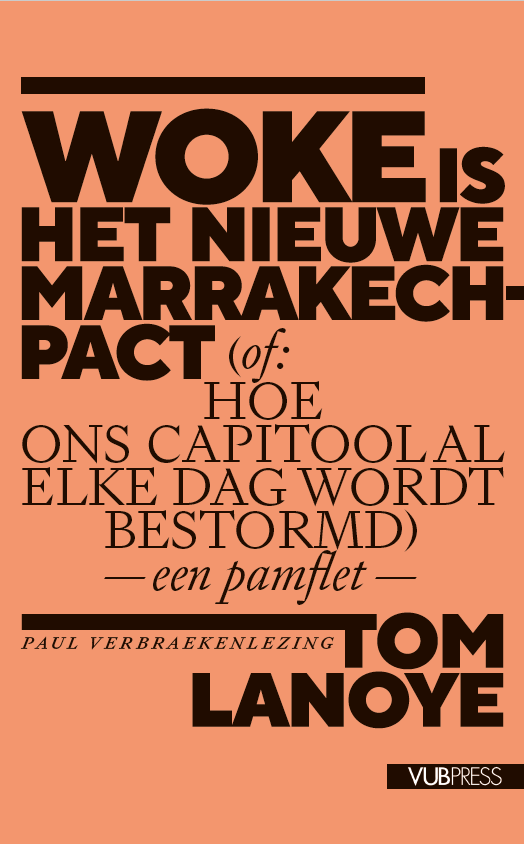 Tom Lanoye is niet alleen één van de belangrijkste schrijvers van ons land – onlangs schreef hij het magistrale werk De draaischijf – hij is ook een geëngageerd artiest. Met ronkende retoriek, satire en een vlijmscherpe pen fileert hij in columns regelmatig het politieke landschap. Ter gelegenheid van de 18e Paul Verbraekenlezing, die plaatsvindt op zaterdag 29 april, schreef hij het pamflet Woke is het nieuwe Marrakesh-pact (ASP, 2023). "Vlaanderen staat op een keerpunt. Er worden vele middelen ingezet om de culturele eigenheid van Vlaanderen vorm te geven en zodoende de rechts-nationalistische visie te legitimeren. Vele intellectuelen surfen op de golf van de verrechtsing. De verkiezingen van 2024 zullen in een verhitte ideologische confrontatie plaatsvinden."