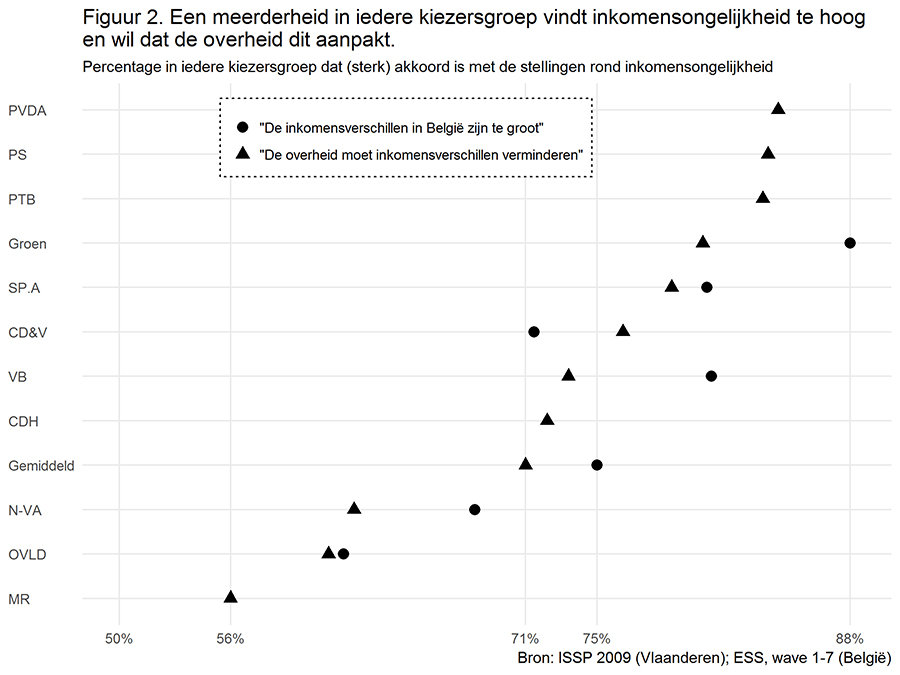 Ten eerste dat in termen van individuele attitudes er in België een uitgesproken stevig draagvlak is voor het aanpakken van inkomensongelijkheid. Dit zou progressieve partijen, vakbonden, middenveldorganisaties, enzovoort moeten aanzetten tot een (nog meer) zelfzeker pleidooi voor herverdeling en rechtvaardige fiscaliteit. Het feit dat er in elk kiespubliek een meerderheid te vinden is tégen het huidige niveau van inkomensongelijkheid en vóór overheidsmaatregelen om dit te verminderen, toont het potentieel van een duidelijke profilering op dit thema.
