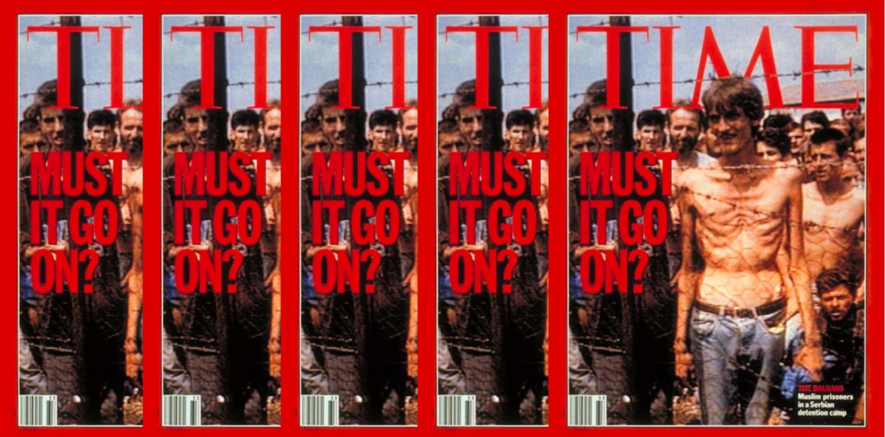 Toen ik in 1999 de tentoonstelling Furor Teutonics maakte, over de cumulatieve radicalisering en genocide tijdens het nationaal-socialisme, eindige ik deze met een reflectie op hedendaags collectief geweld. De geselecteerde beelden waren toen de massagraven uit de Balkan en de genocide in Rwanda. Twee casussen waarbij de internationale gemeenschap wederom faalde in hun verantwoordelijkheid om te beschermen. Eén foto die ik gebruikte was de cover van de Times uit augustus 1992 met daarop Fikret Alić, één van de vele opgesloten Bosniakken in het concentratiekamp Trnopolje, nabij Prijedor. De uitgemergelde man achter de prikkeldraad was zo'n sterk beeld dat het refereerde naar de beelden van 'Musselmänner' tijdens de Holocaust. Concentratiekampen bleken niet iets van het verleden. 'Must it go on?', titelde dan ook de Times destijds. Wat vroeger Dachau, Buchenwald, Auschwitz heette, kreeg opnieuw een beeld en naam: Trnopolje, Keraterm, Omarska, … Nieuwe plaatsnamen die worden toegevoegd aan het Europese boek der kampen.