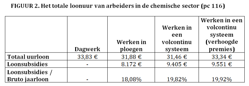 Om deze vraag te beantwoorden, hebben we het totale uurloon van arbeiders in de chemische sector met verschillende arbeidsregelingen vergeleken, rekening houdend met de looncomponenten van paritair comité 116 en de loonsubsidies. We hebben ook de volgende gegevens vastgesteld: