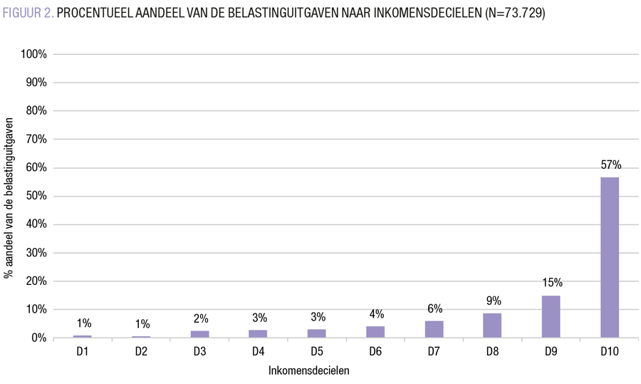 Meer dan de helft van de (para)fiscale subsidies vloeit naar de 10% werknemers met de hoogste lonen.