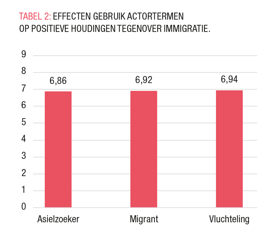 Toch toonde een verdiepende analyse dat de combinatie van frame en actorterm ertoe doet. Zo leidde het negatieve frame in combinatie met de term ‘immigrant’ tot de meest negatieve attitudes. Omgekeerd had een positief frame in combinatie met ‘asielzoekers’ het grootst milderende effect op de negatieve attitudes van de respondenten.